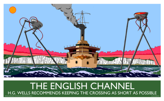 Inspired by the British Rail travel posters common in the UK from the 1930s - 1960s, I am creating a number of designs advertising the dubious pleasures offered by a range of destinations from unusual fiction. These posters have proved quite popular and have been used for book covers and for convention publicity.